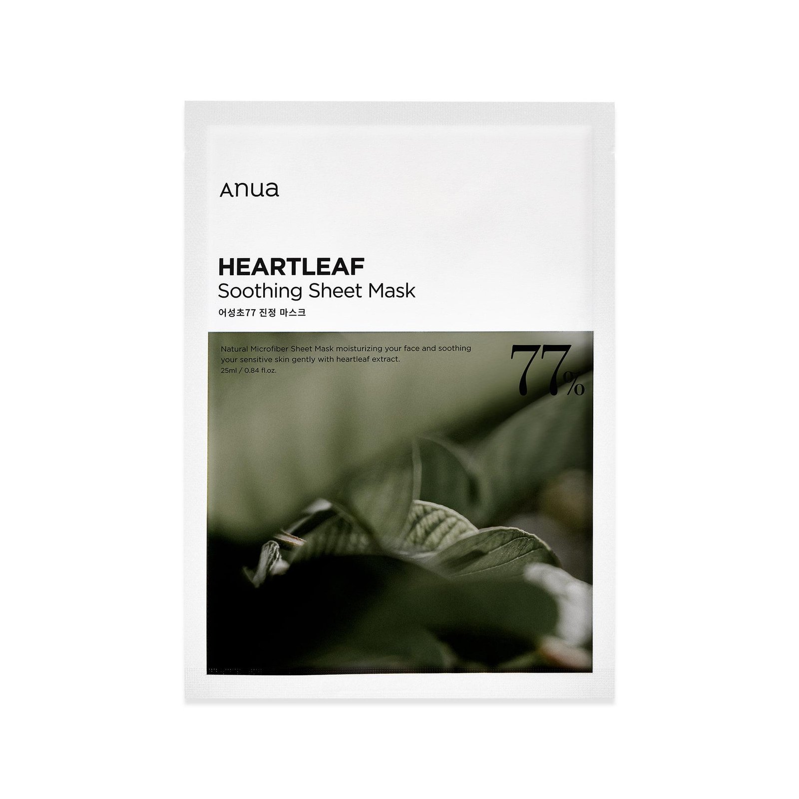 Soothe and hydrate with Anua Heartleaf 77% Soothing Sheet Mask 25ml—a Korean sheet mask infused with 77% Houttuynia Cordata (heartleaf) extract to calm redness, moisturize deeply, and protect sensitive skin from environmental stressors.