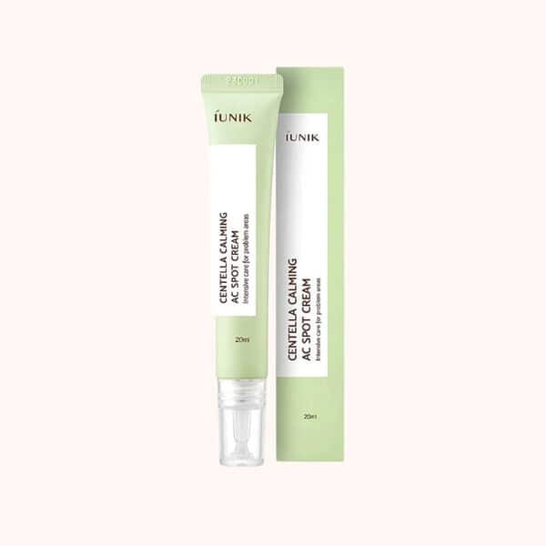Zap blemishes and soothe irritation with iUNIK Centella Calming AC Spot Cream 20ml—a Korean acne treatment designed to calm inflamed skin, reduce excess oil, and gently exfoliate troubled areas using a multi-acid and botanical formula.
